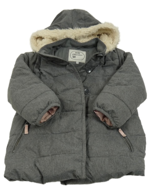 Šedý melírovaný šusťákový zimní kabát s kapucí M&S
