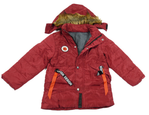 Vínová šusťáková zimní bunda s kapucí s kožešinou