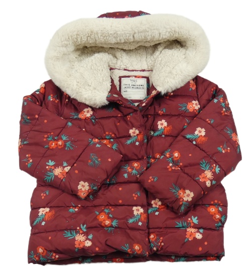 Vínová květinová šusťáková zimní bunda s kapucí M&S