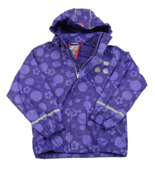 Tmavofialová nepromokavá jarní bunda s lego figurkami a odepínací kapucí Tchibo
