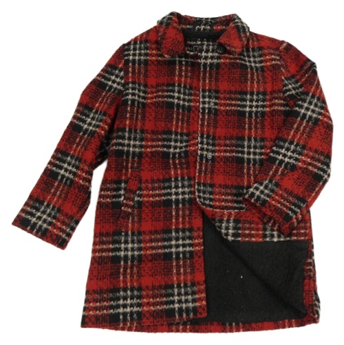 Červeno-černo-bílý kostkovaný vlněný zateplený kabát Next