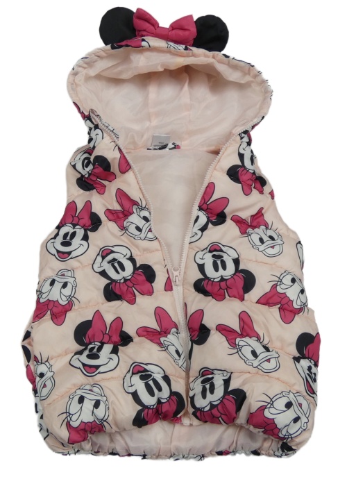Světlerůžová šusťáková zateplená vesta s Minnie a Daisy a kapucí Disney