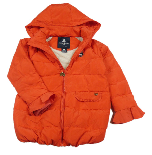 Červená šusťáková zateplená bunda s medvídkem a kapucí
