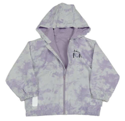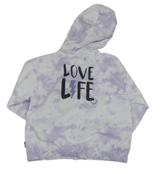Fialovo-bílá batikovaná šusťáková jarní bunda s nápisem a kapucí George