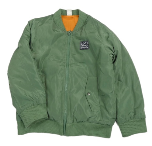 Zelenoolivový šusťákový zateplený bomber s nášivkou little kids