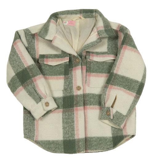 Smetanovo-khaki-růžová kostkovaná podšitá košilová bunda Dunnes