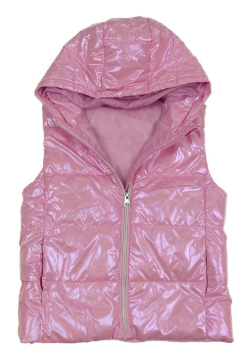 Růžová metalická šusťáková zateplená vesta s kapucí Dunnes