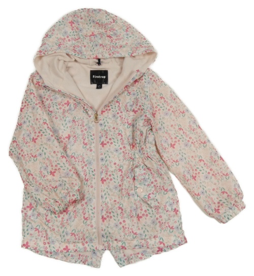 Pudrová šusťáková jarní parka s kytičkami a kapucí Firetrap