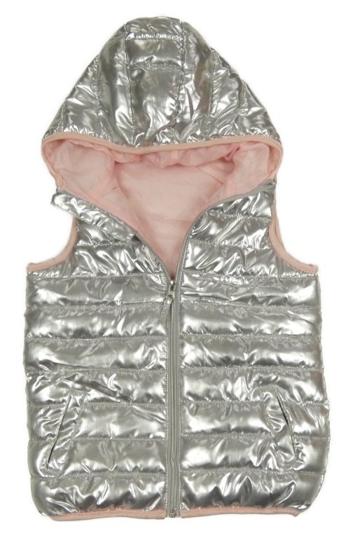 Stříbrná šusťáková prošívaná zateplená vesta s kapucí Kiki&Koko