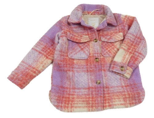 Růžovo-fialová kostkovaná flaušová košilová podšitá bunda Matalan