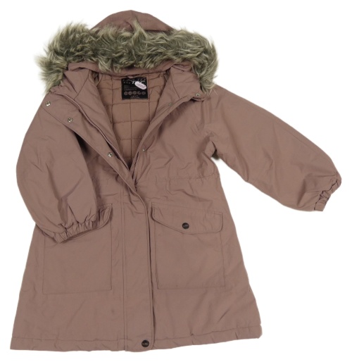 Starorůžový šusťákový zimní kabát s kapucí s kožešinou Next