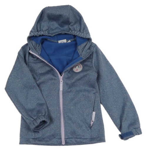 Tmavomodrá melírovaná softshellová bunda s nášivkou a kapucí Alive