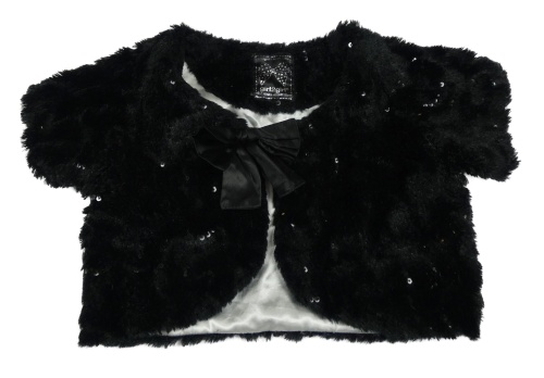 Černé kožešinové podšité bolerko s flitry a mašlí girl2girl