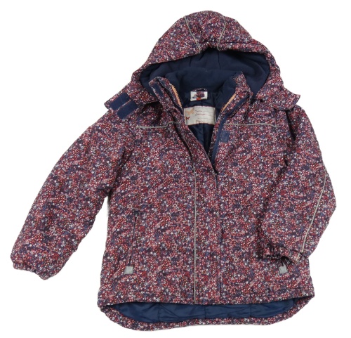 Tmavomodro-červená květovaná šusťáková zateplená bunda s kapucí Topolino
