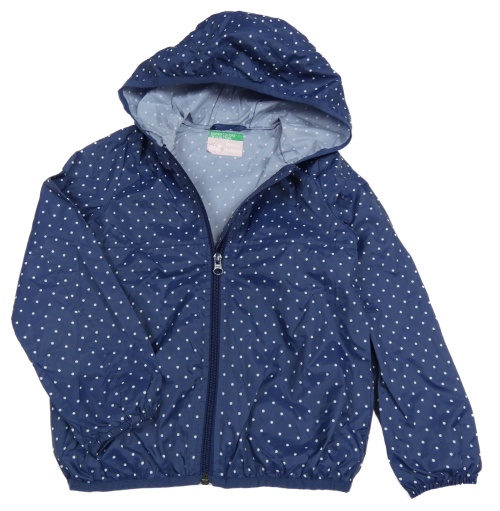 Tmavomodrá puntíkatá šusťáková nepromokavá bunda s kapucí Benetton