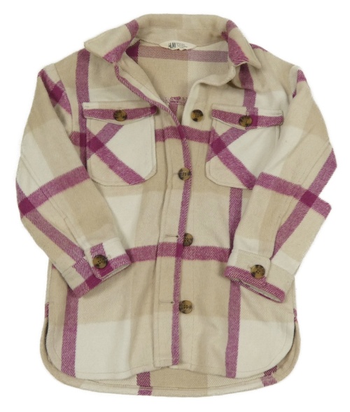 Béžovo-fuchsiová kostkovaná flaušová košilová bunda H&M