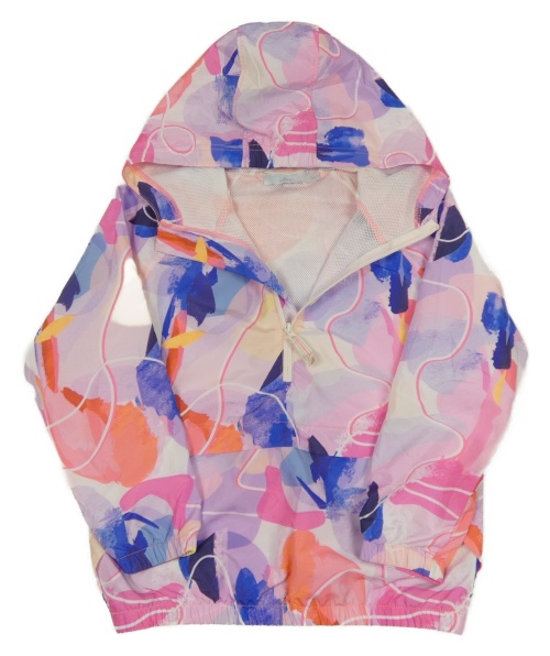 Světlerůžovo-fialovo-neonová vzorovaná šustáková jarní bunda s kapucí