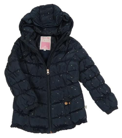 Tmavomodro-zlatá puntíkatá šusťáková zimní bunda s kapucí Tom Tailor