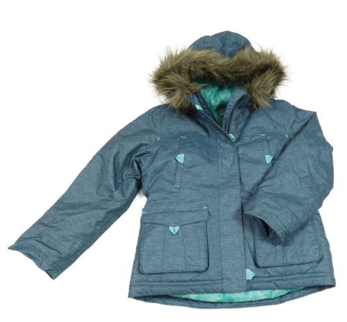 Modrozelená melírovaná šusťáková zimní funkční bunda s kapucí s kožešinou Decathlon