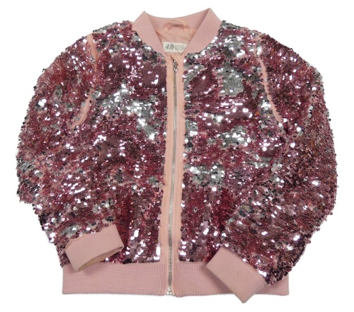 Růžovo-stříbrný flitrový crop bomber H&M