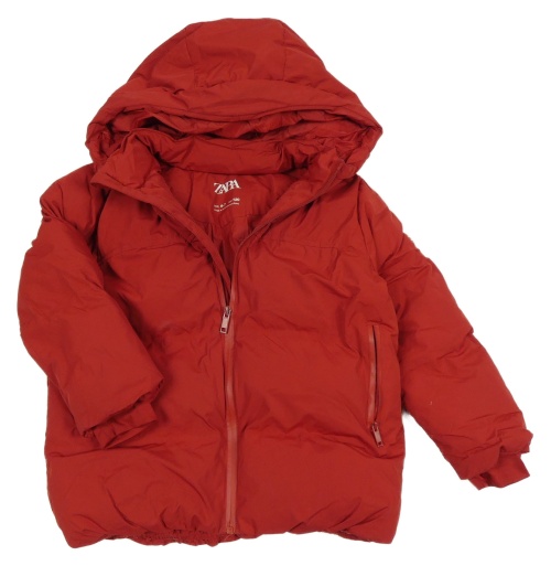 Červená šusťáková zimní bunda s nášivkou a kapucí ZARA