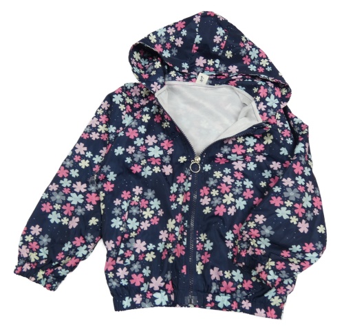 Tmavomodro-růžová květovaná šusťáková jarní bunda s kapucí
