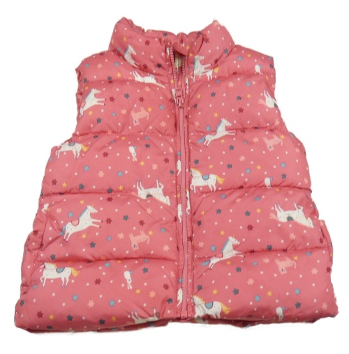 Růžová prošívaná šusťáková zateplená vesta s jednorožci a hvězdičkami Sfera