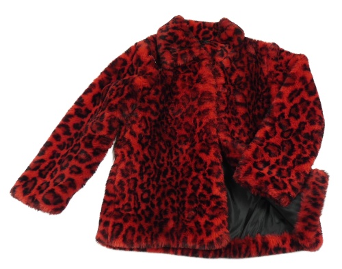 Červeno-černý kožešinový podšitý kabát s leopardím vzorem George