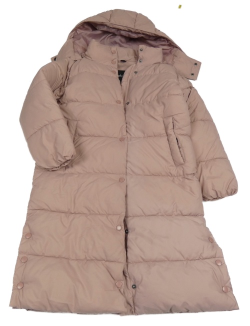Pudrový šusťákový zimní kabát s kapucí