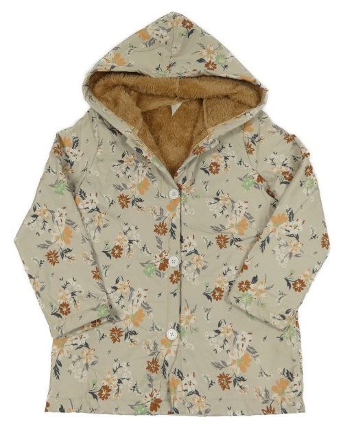 Světlebéžová květovaná šusťáková lehce zateplená bunda s kapucí Shein