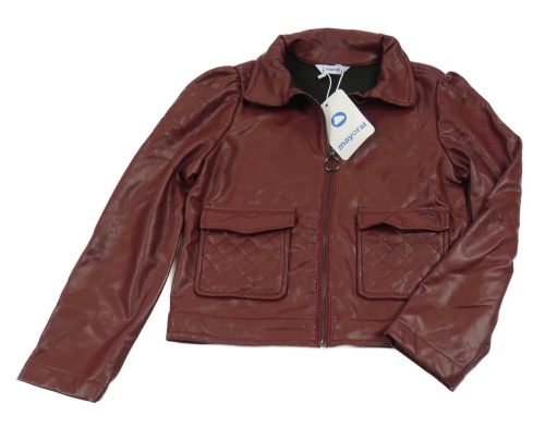 Nové - vínová koženková crop bunda s límečkem mayoral