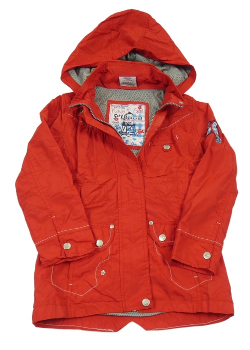 Červená šusťáková jarní parka s číslem a odepínací kapucí Topolino