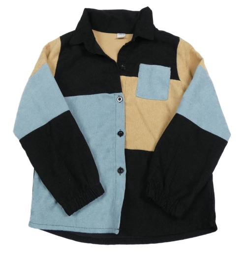 Černo-modro-béžová manšestrová košilová bunda SHEIN