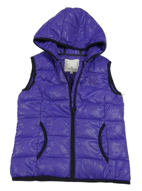 Fialová šusťáková zateplená vesta s výšivkou a kapucí Tom Tailor