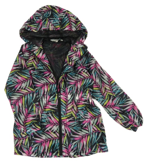 Černá šusťáková jarní parka s listy a kapucí E-vie