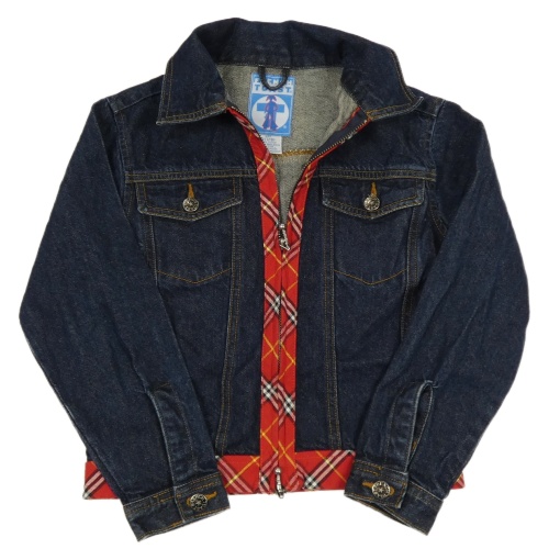 Tmavomodro-červeno-károvaná riflová bunda s límečkem FRENCH TOAST