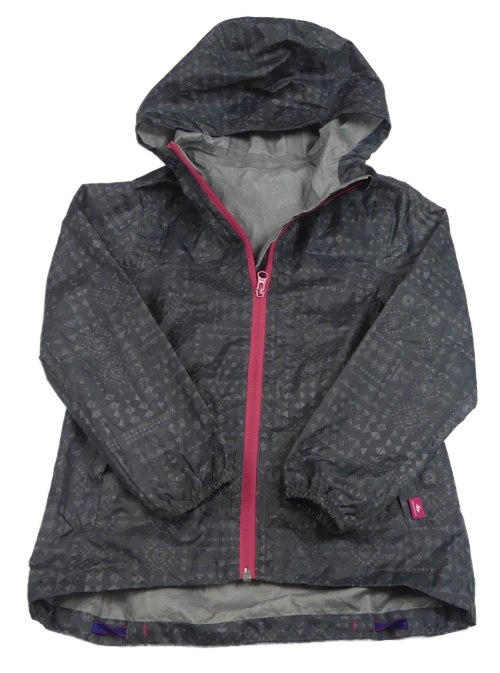 Tmavošedá vzorovaná šusťáková nepromokavá bunda s kapucí Quechua