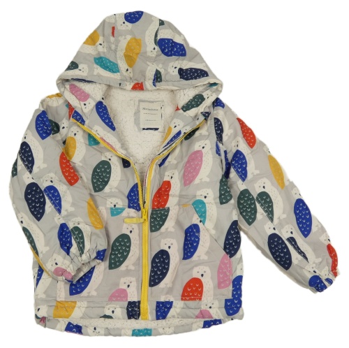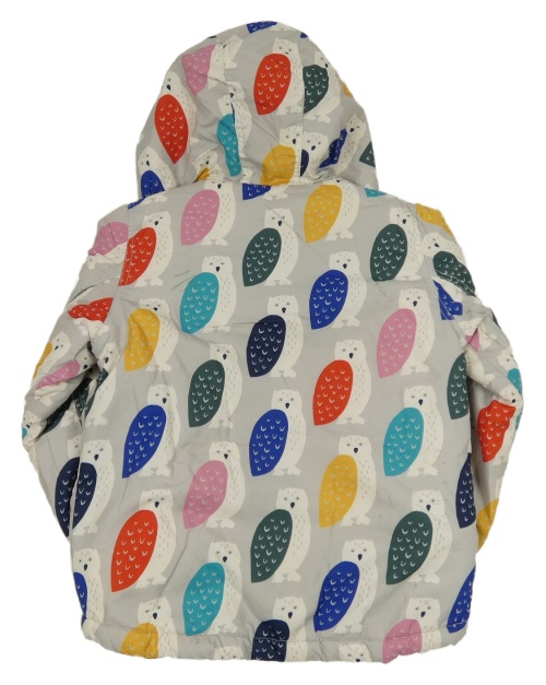 Šedo-barevná šusťáková zimní bunda se sovami a kapucí Meanbear