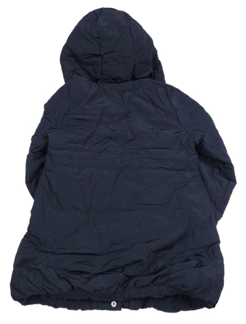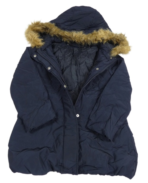 Tmavomodrý šusťákový zateplený kabát s kapucí s kožešinou