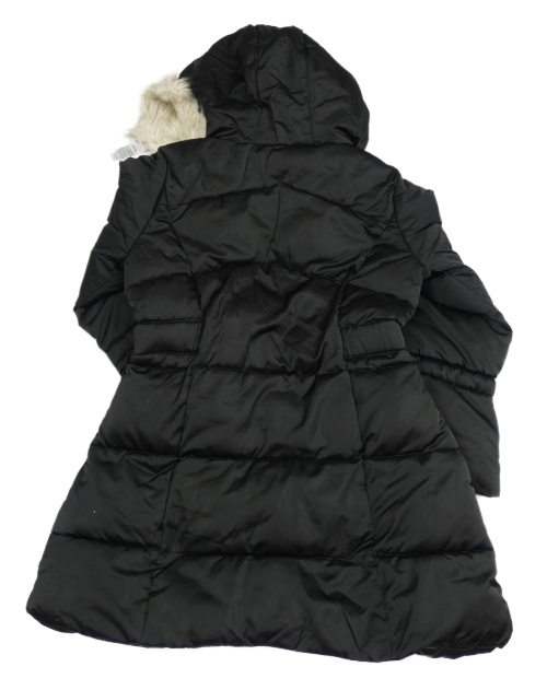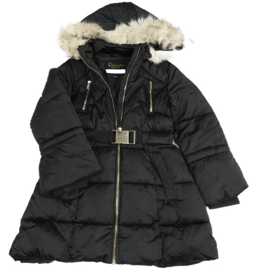 Černý šusťákový zimní kabát s páskem a kapucí s kožešinou River Island