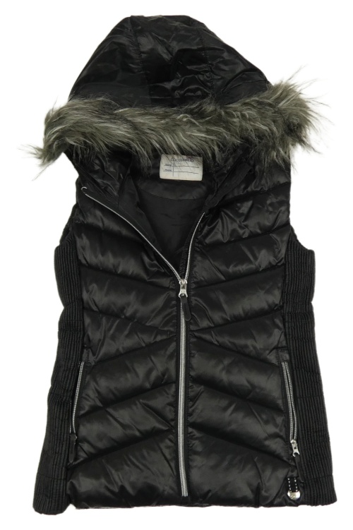 Černá šusťáková prošívaná zateplená vesta s kapucí s kožešinou Coccodrillo