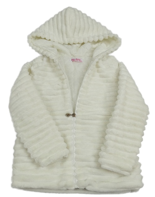 Smetanová žebrovaná plyšová zateplená bunda s kapucí