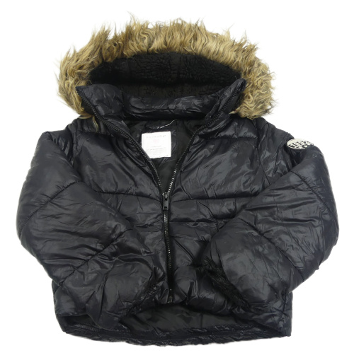 Černá šusťáková zimní crop bunda s kožešinou a kapucí Primark