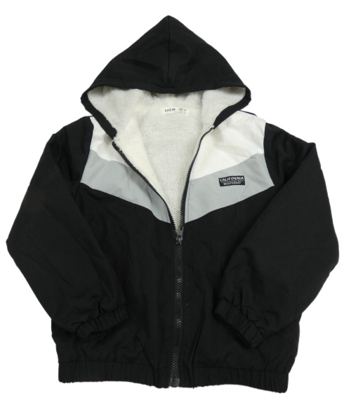 • Černo-bílo-šedá šusťáková zateplená bunda s nášivkou a kapucí SHEIN