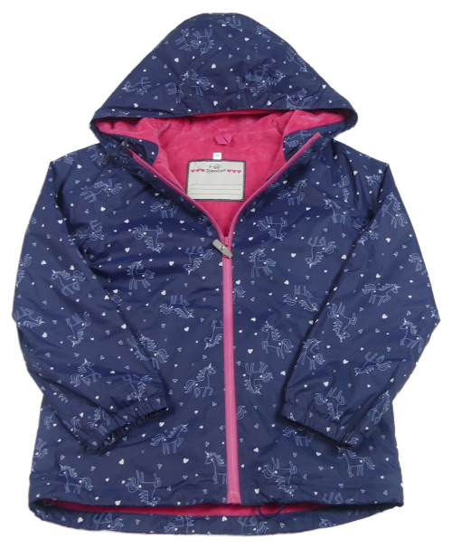 Tmavomodrá šusťáková lehce zateplená bunda s jednorožci a kapucí Topolino