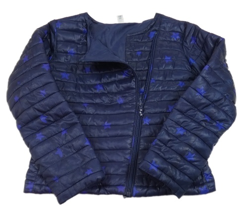Tmavomodrý šusťákový prošívaný crop křivák s hvězdami