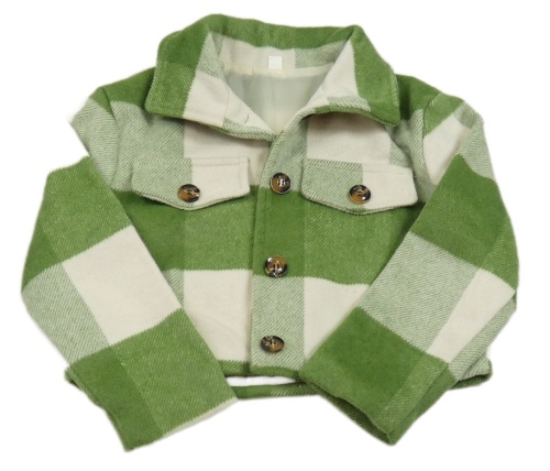 Zeleno-bílý kostkovaný crop podšitý kabát
