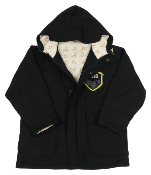 Černá flaušová zateplená bunda s erbem a kapsami a kapucí