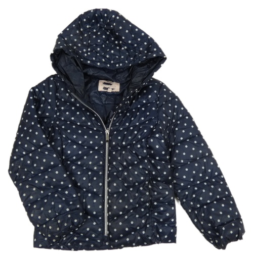 Tmavomodrá puntíkatá šusťáková prošívaná lehká zateplená bunda s kapucí