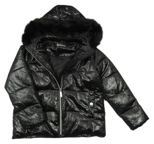 Antracitovo-stříbrná prošívaná zimní bunda s kapucí Lipsy London